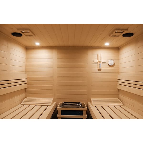 Designed for indoor installation within a home gym, spare room, or dedicated wellness area. The cabin-style construction allows this luxury home wellness sauna to integrate seamlessly into residential environments.