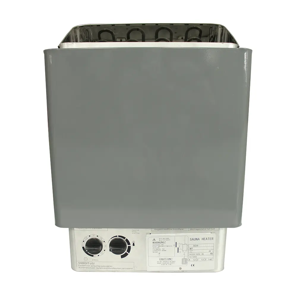 The traditional steam stove delivers deep, enveloping warmth with onboard heat regulation. Sauna stones are included and should be rinsed before first use. This heating system provides consistent steam performance suitable for extended sessions and authentic high-temperature bathing.