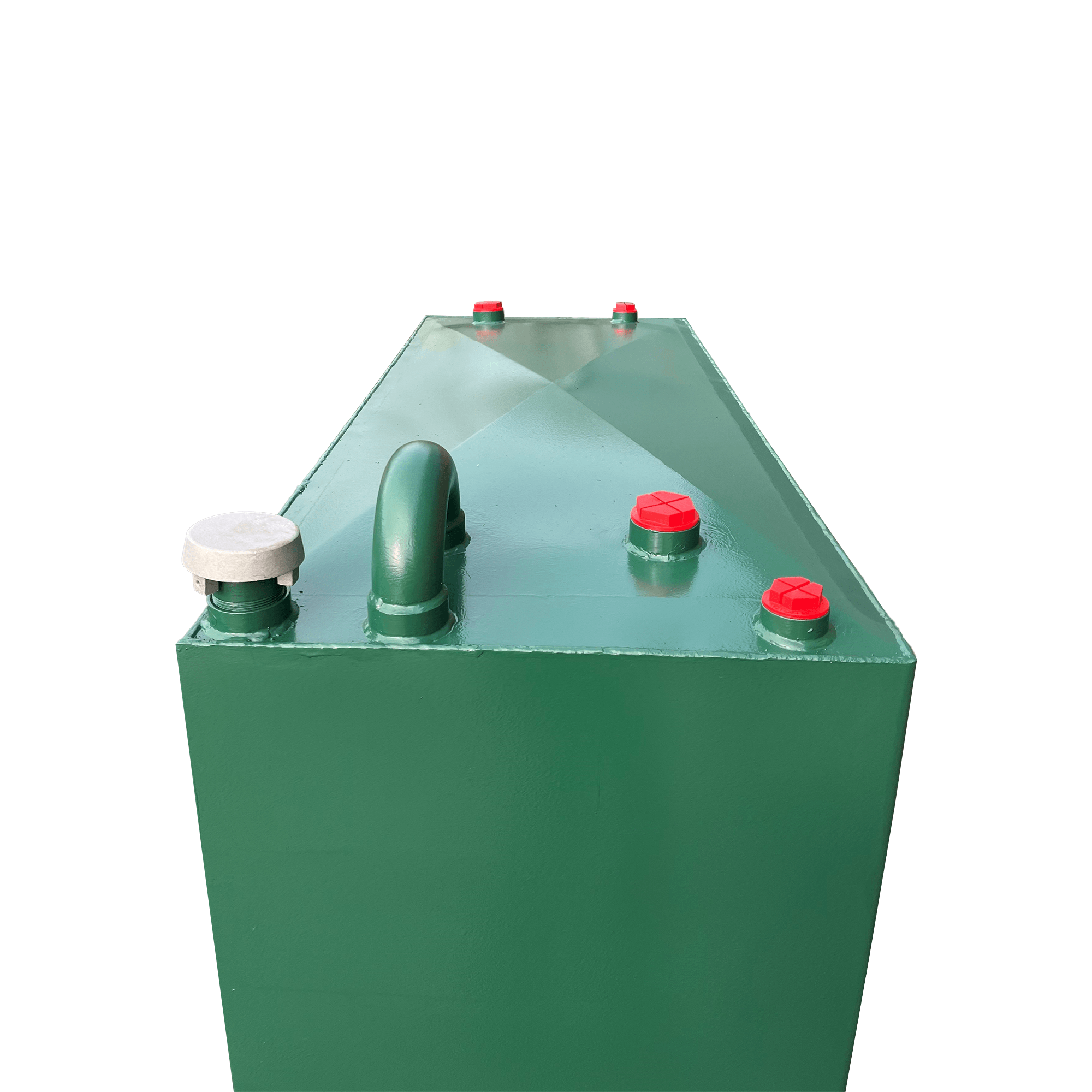 The tank body is manufactured from 2mm thick steel and coated with rust inhibiting primer to help protect the surface from environmental exposure. External surfaces are finished with primer and gloss coating, while the internal lining remains self colour. The bund layer is designed to contain 110% of inner tank volume, supporting long-term durability for an oil tank for domestic heating installation where reliability and containment are important considerations.