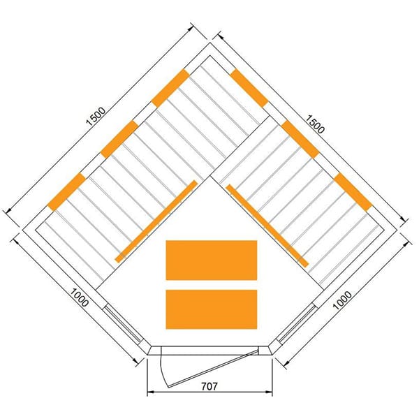 Diamond corner sauna layout for efficient space use
