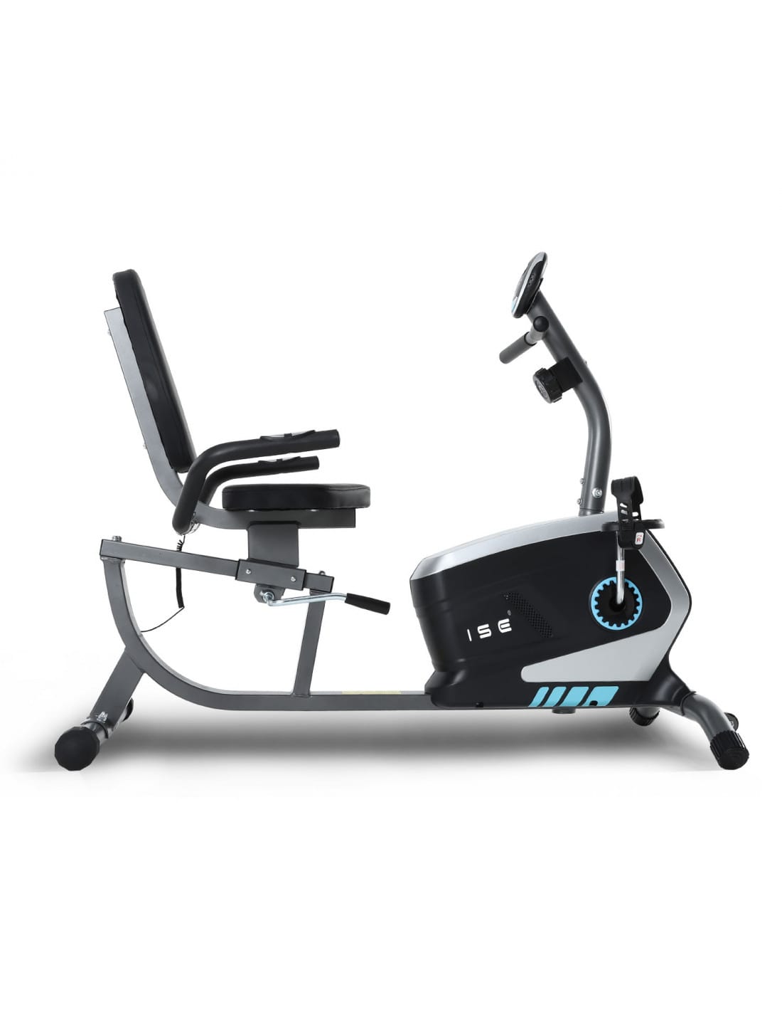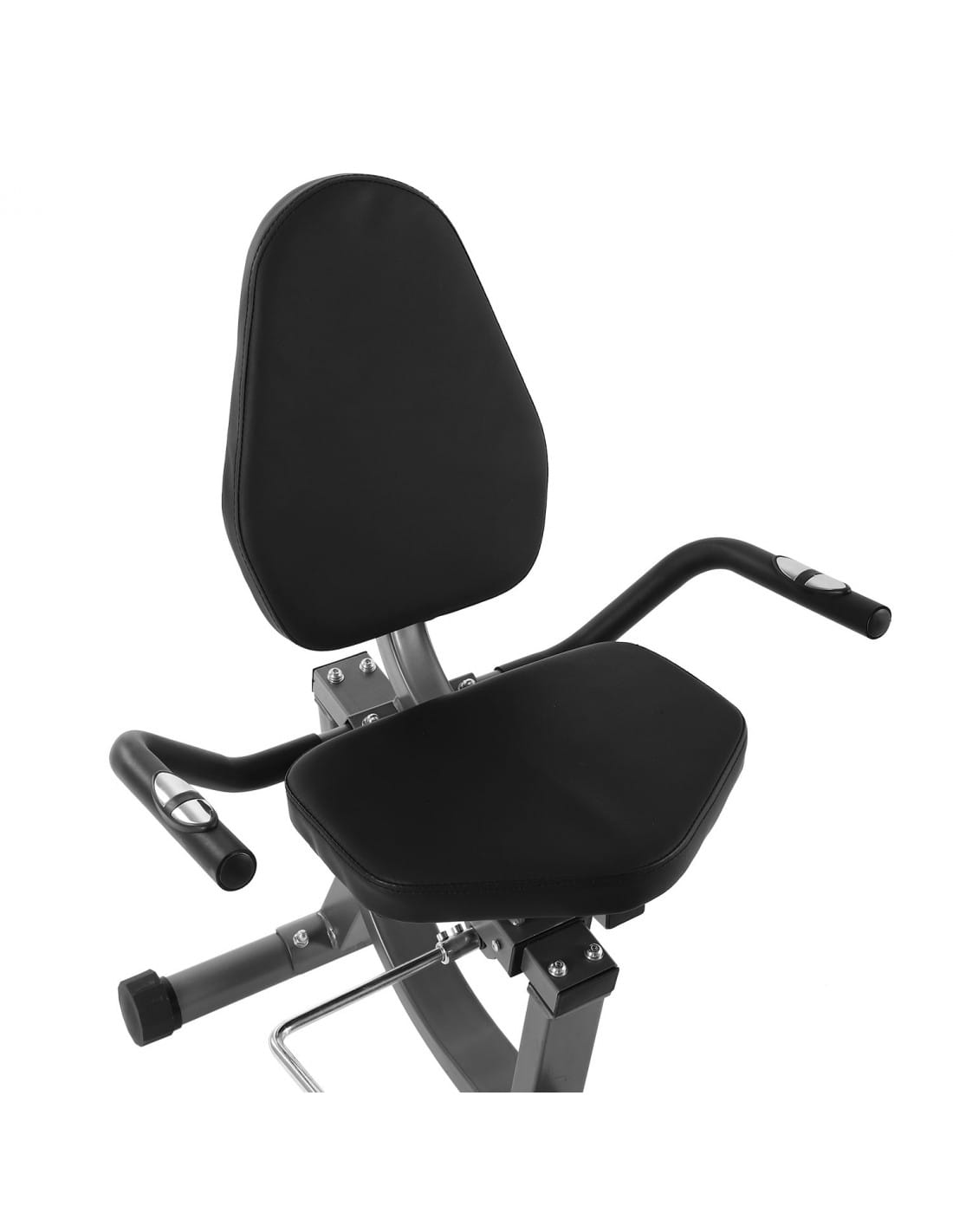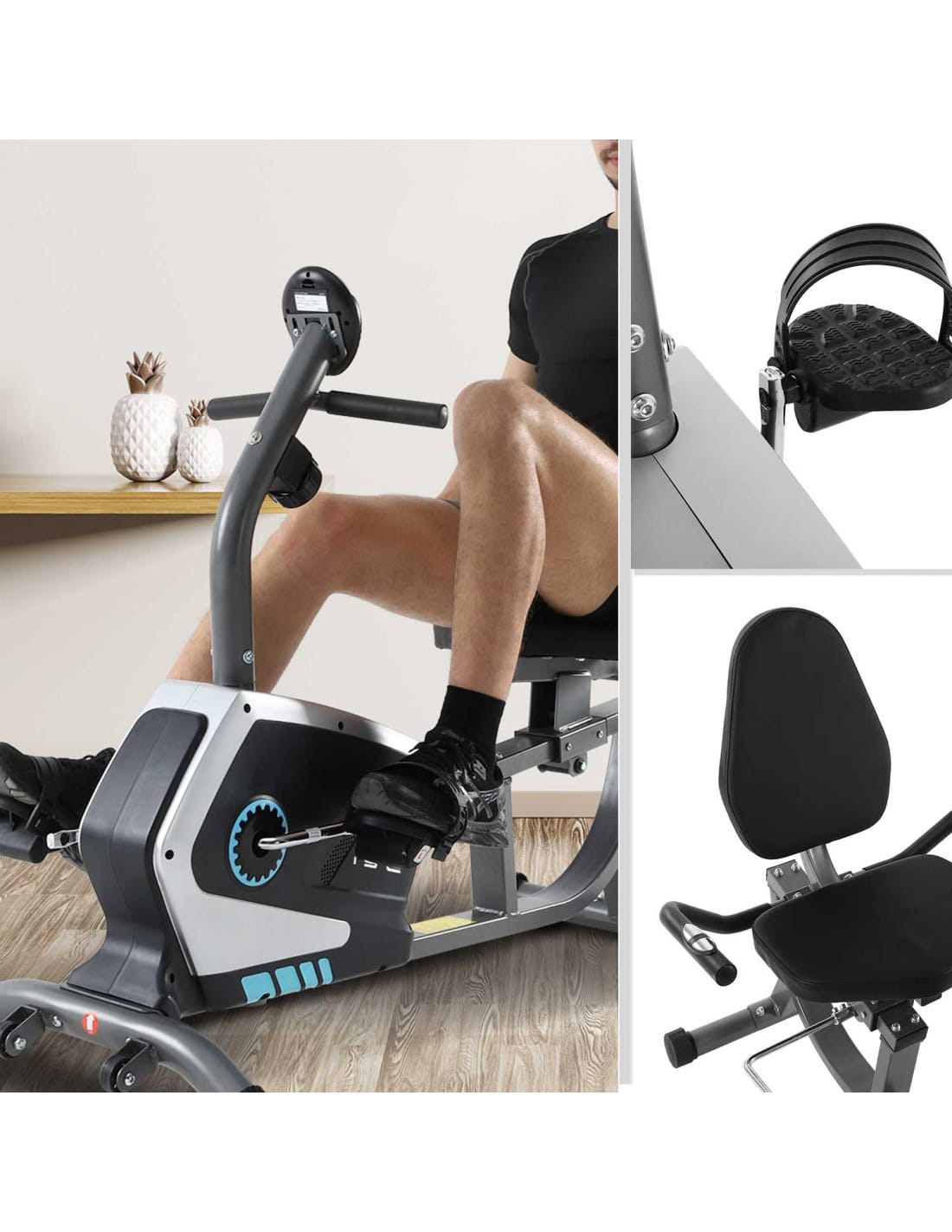 The bike features a stable frame, wide seat, and ergonomic backrest that support comfortable longer workouts. Non-slip pedals with adjustable straps keep feet secure during training, while integrated sensors make this a practical recumbent bike with pulse sensors, allowing users to monitor heart rate throughout their session.