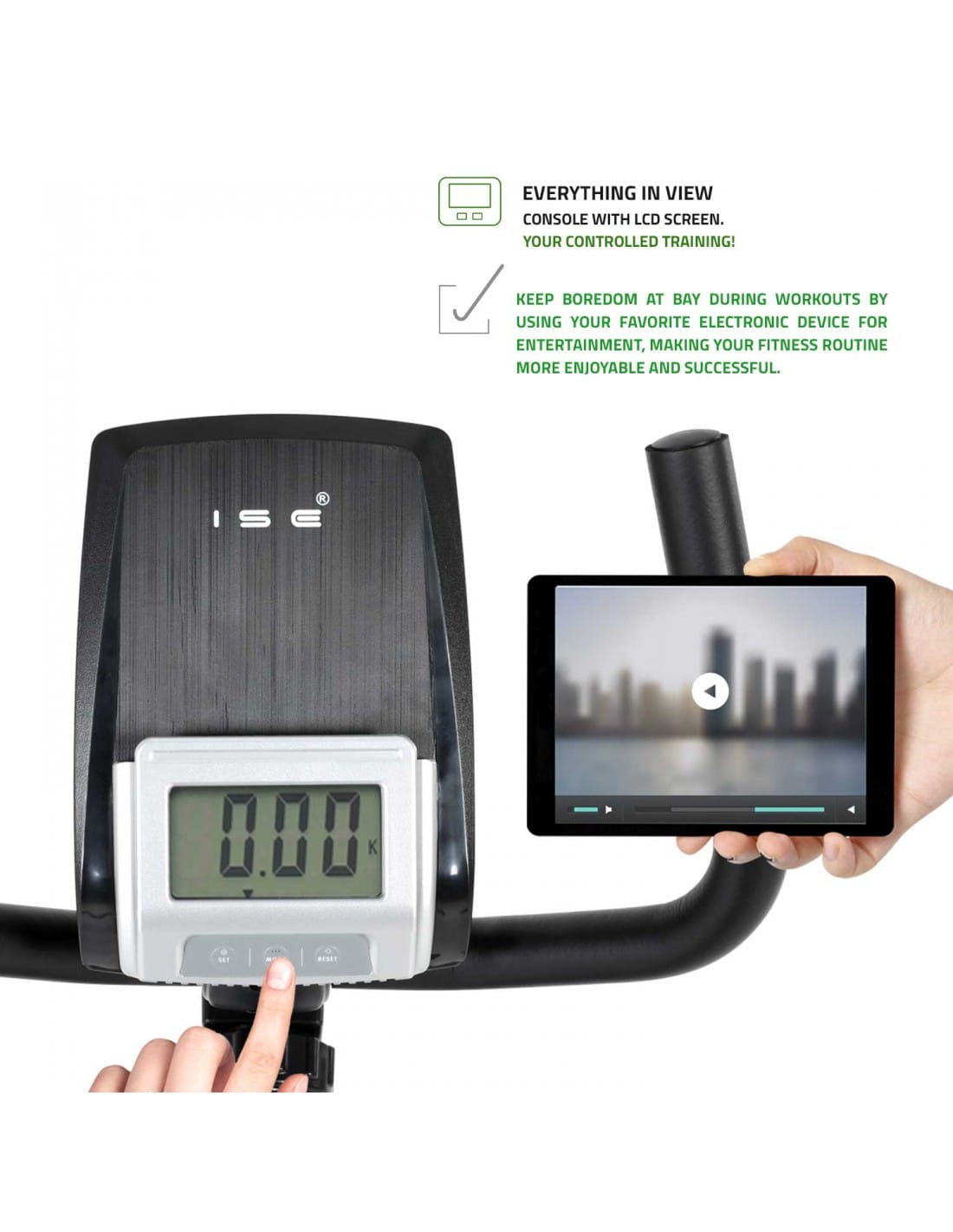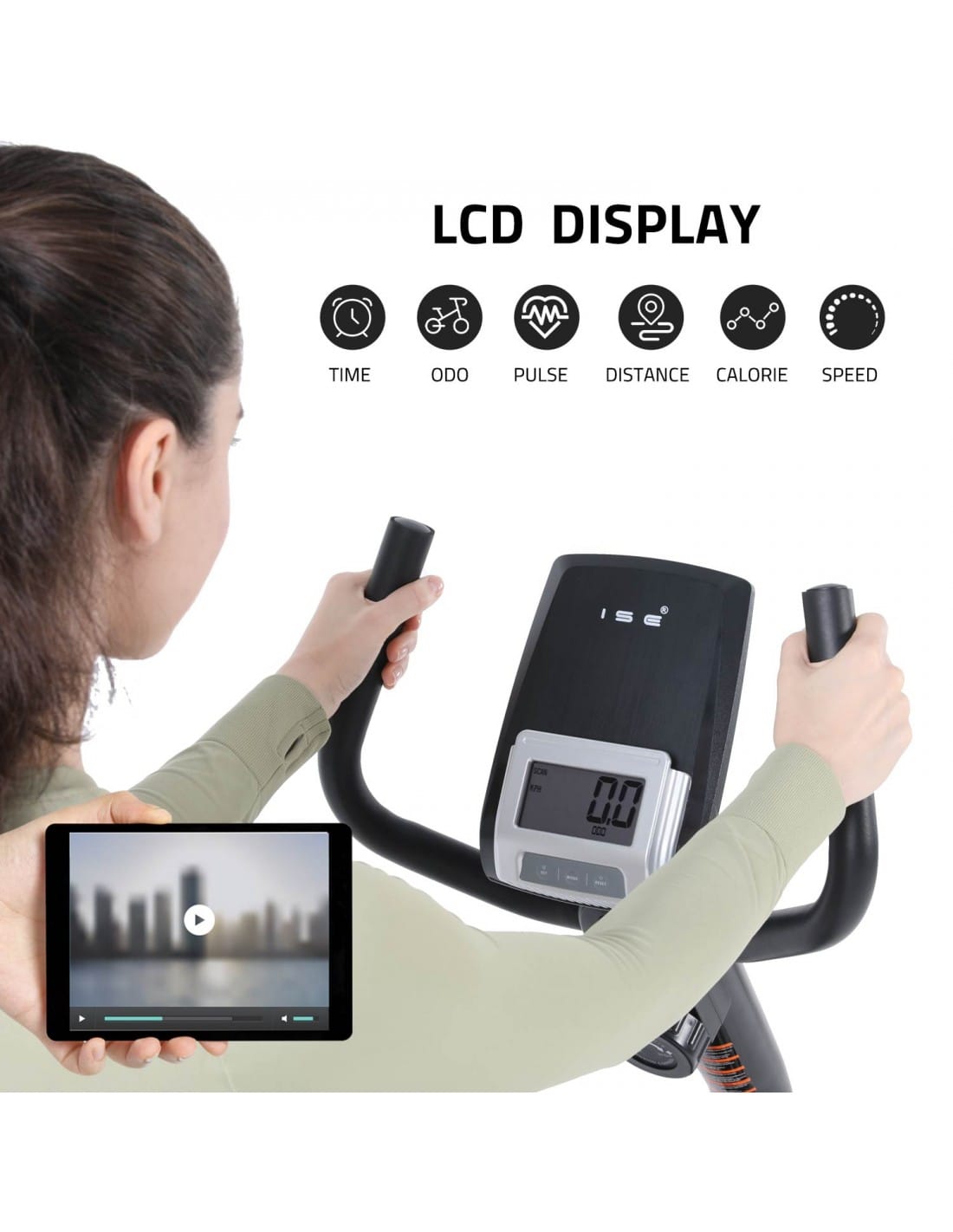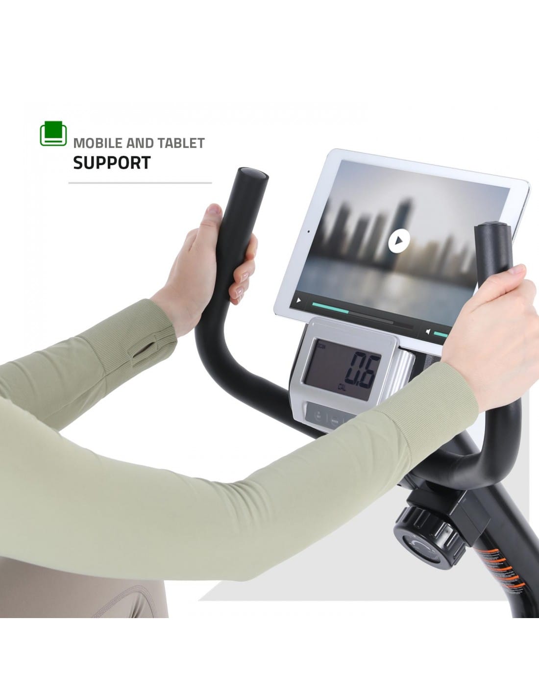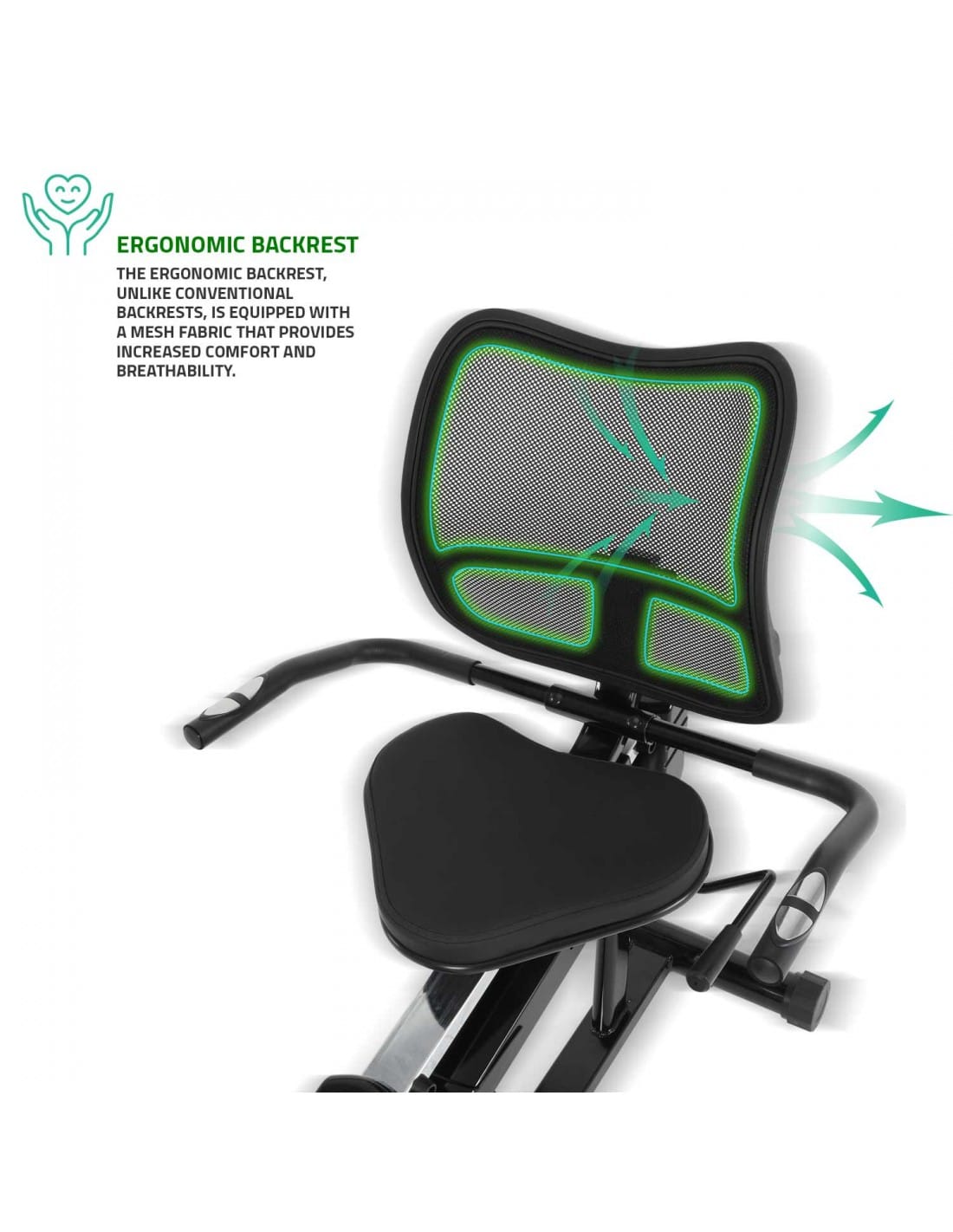 The stable frame supports smooth pedalling while wide non-slip pedals with adjustable straps keep feet secure during training. The ergonomic backrest supports longer workouts, while integrated hand sensors make this a practical recumbent bike with pulse sensors, allowing users to monitor heart rate during exercise.
