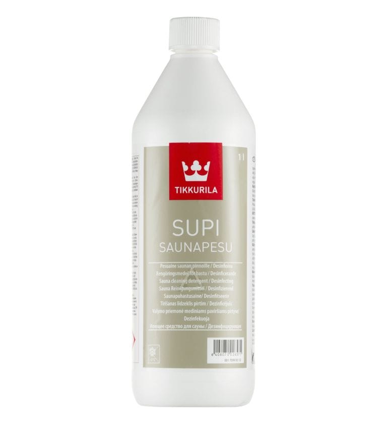 Supi Saunapesu is an effective but gentle cleaning agent. It bleaches wooden surfaces and dissolves lime scale deposits from tile surfaces. Supi Saunapesu is suitable for cleaning wooden, metal and tile surfaces in saunas and other humid rooms.